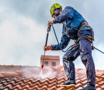 Enlèvement des végétations, des lichens, et divers résidus pour empêcher les dommages et étendre la longévité d'utilisation de la toiture.